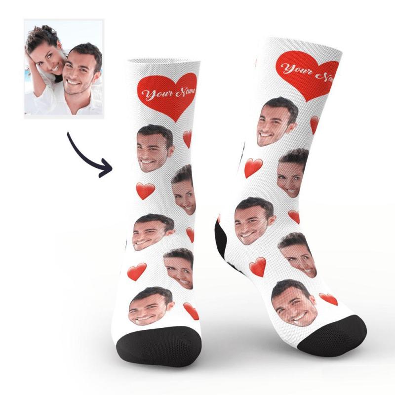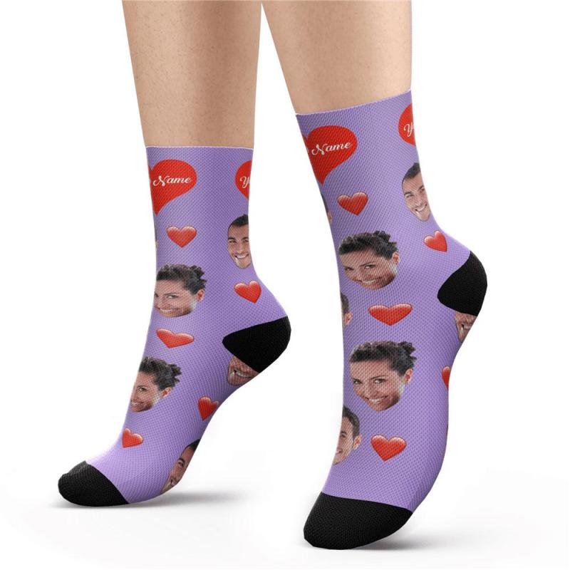 Our custom printed photo socks are the perfect gift for anyone for any occasion! You can put your face on socks, your best friend, or that one uncle. The options are endless.... Perfect for any holiday, birthday, or anniversary! Custom Photo Socks,Cute Pets Face Socks. Do you think that every day the life is the same and nothing new is happening? Here is a fantastic and interesting way to make a difference in your life, which is to record your each and every memorable moment on socks! It will be a new clothing tendency since it makes the important person be with you every day. Custom Photo Socks with Your Text Heart.