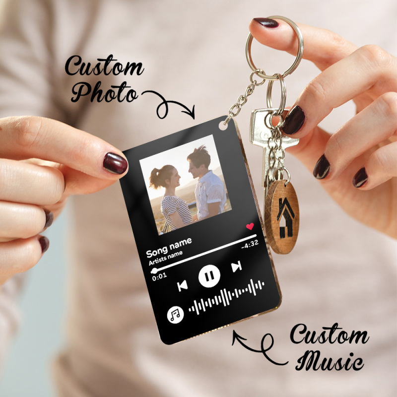 Just upload your favorite photo and choose wonderful music, our designers will take care of others!?Make your unique music keychain NOW! You can even engrave your name on the keychain as the name of the singer.