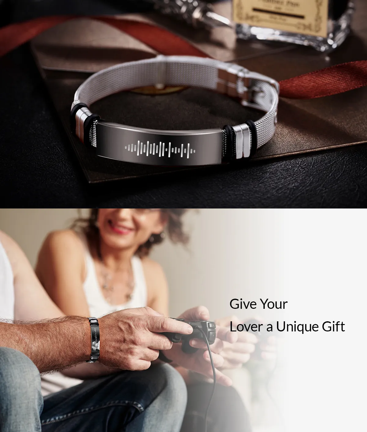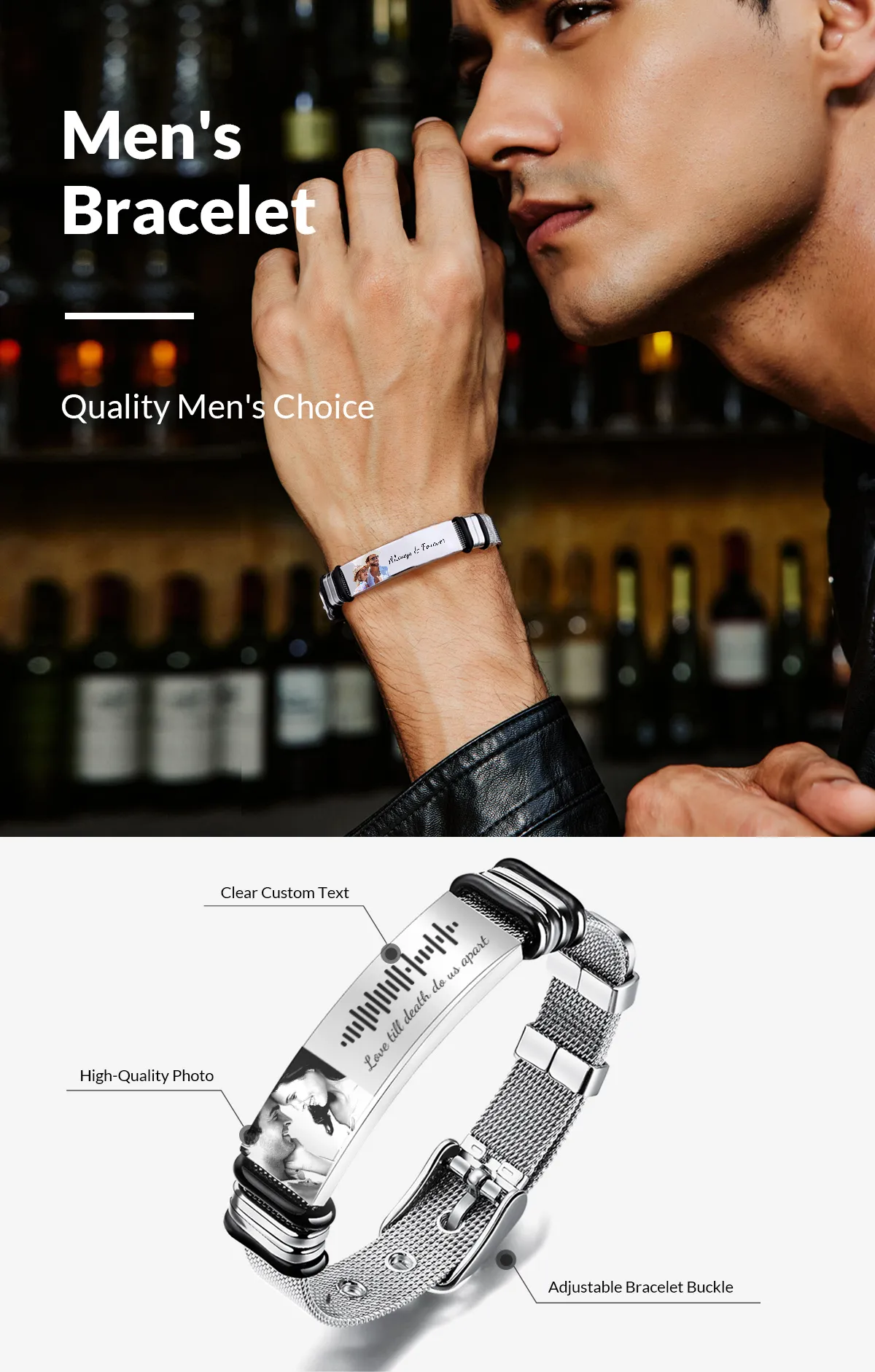 Customized Optional Photo Engraved Music Code Stainless Steel Bracelet Best Gifts For Men Gifts For Couples