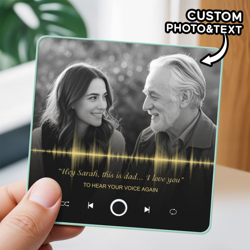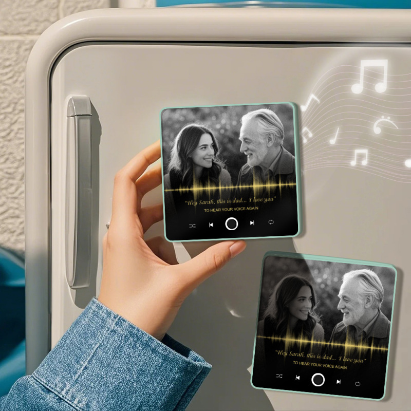 Capture the voices and moments you cherish most with this customizable fridge magnet. Record or upload audio to play anytime—keeping loved ones close, even when they're far away.