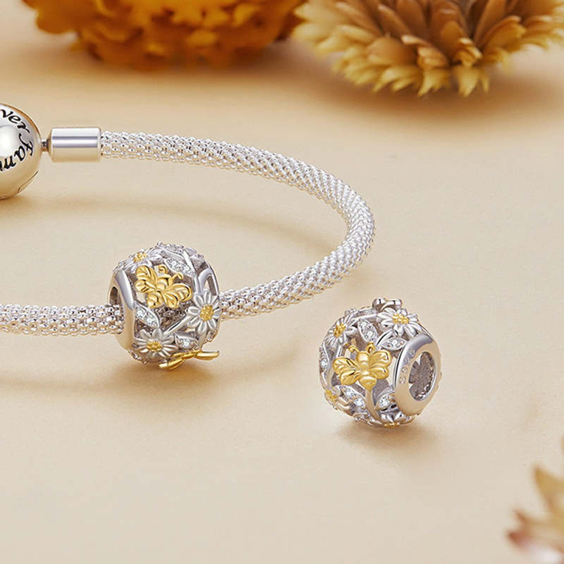 Daisy Bee Yellow Pattern Charm Silver