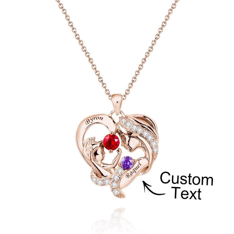 Engravable Mom And Baby Necklace With Birthstone Warm Gifts For Mom