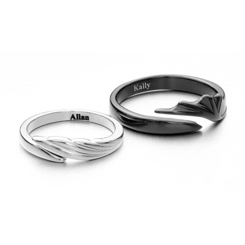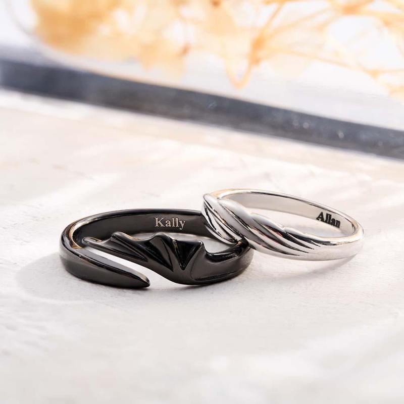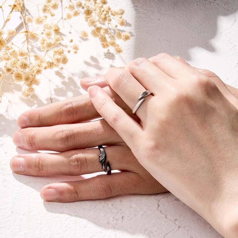 This ring set usually consists of a pair of men's and women's rings, one of which is designed as a devil's wing, and the other is designed as an angel's wings. The black and white color scheme makes the whole look mysterious and elegant.