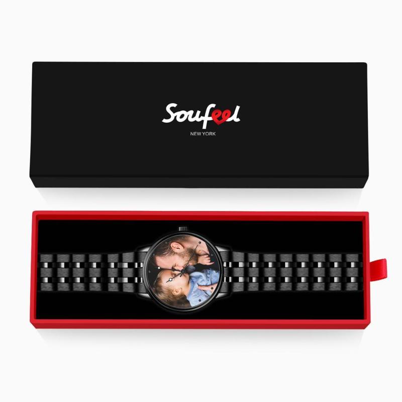 Engraved Men's Black Alloy Bracelet Photo Watch 38mm
