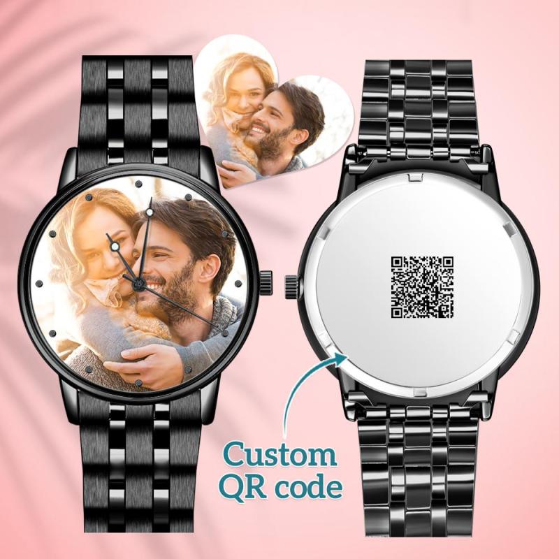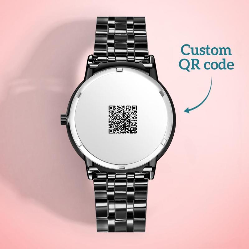 Engraved Men's Black Alloy Bracelet Photo Watch QR Code Watch 38mm Men's Gifts