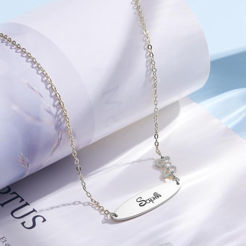 Engraved Necklace with Little Bow Memorial Gift For Girl Silver