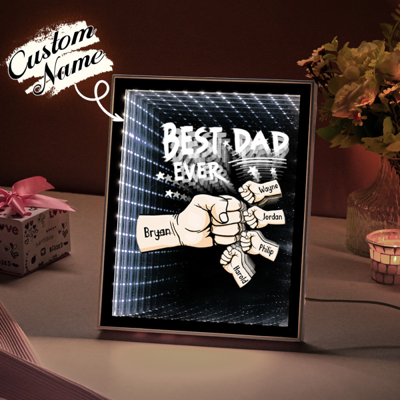 Fist Mirror Light Personalized Night Light - Unique Father's Day Gifts with Custom Kids NamesCrafted for Father's Day, this Fist Mirror Light personalized night light adds a heartfelt touch with customizable kids' names, creating a one-of-a-kind gift that celebrates family bonds. The soft, gentle glow offers a cozy ambiance for children’s bedtime, while the sleek mirror design doubles as a stylish decor piece for any room. Perfect for dads who cherish meaningful moments, this night light blends functionality with sentimental value, making it an ideal choice to honor fatherhood. Let this personalized gem light up their world and serve as a lasting reminder of love and warmth on Father’s Day.