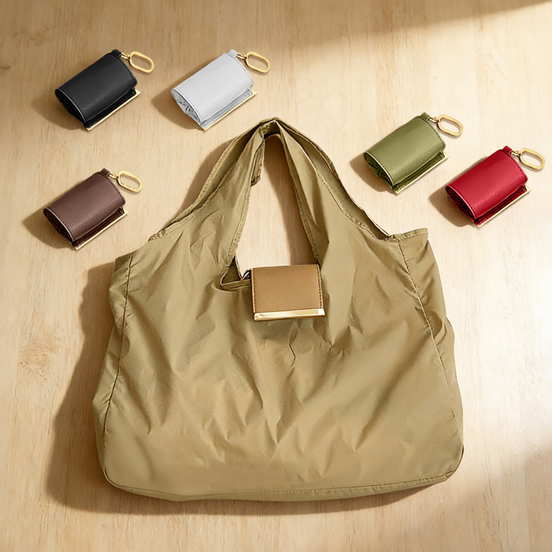 This clever design transforms a large-capacity reusable tote bag into a compact keychain pouch you can carry effortlessly on your bag, keys, or belt.