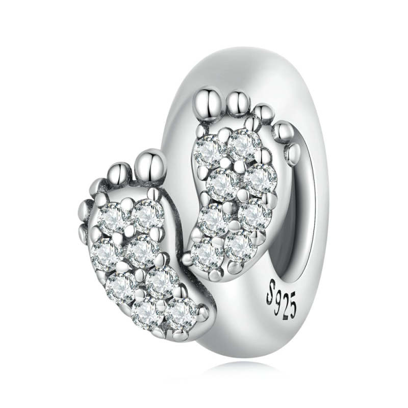 Footprints Stopper Charm Spacer Charm Silver