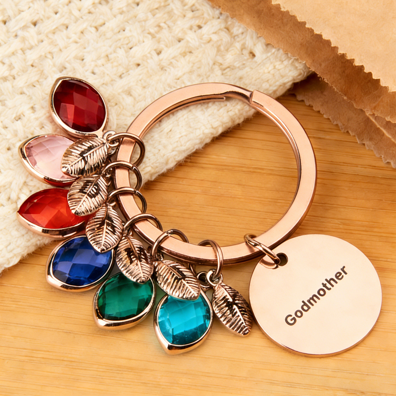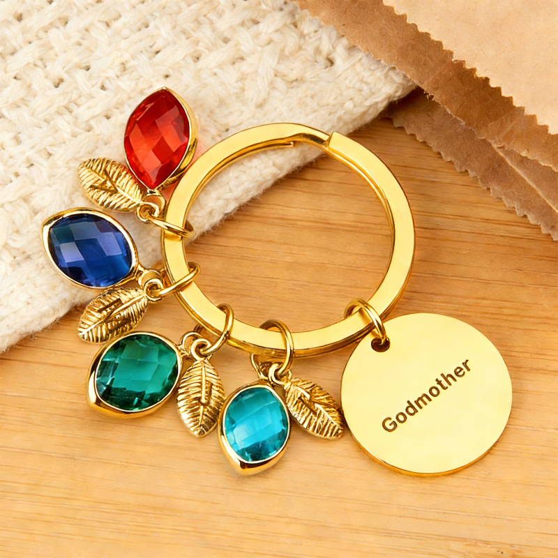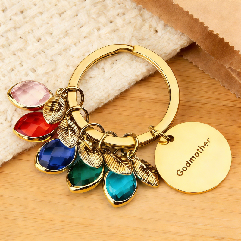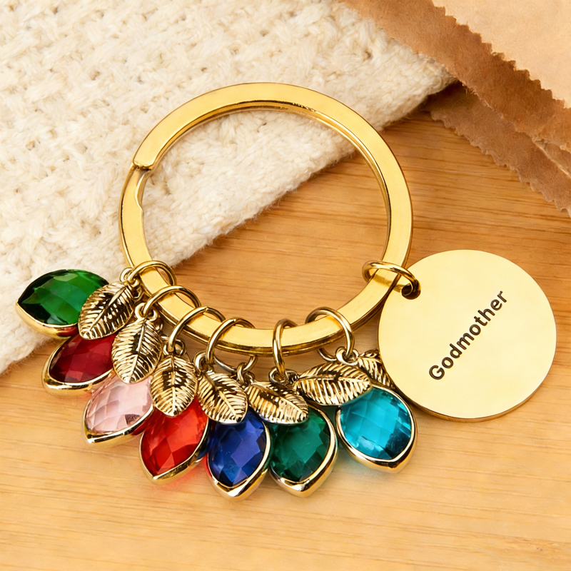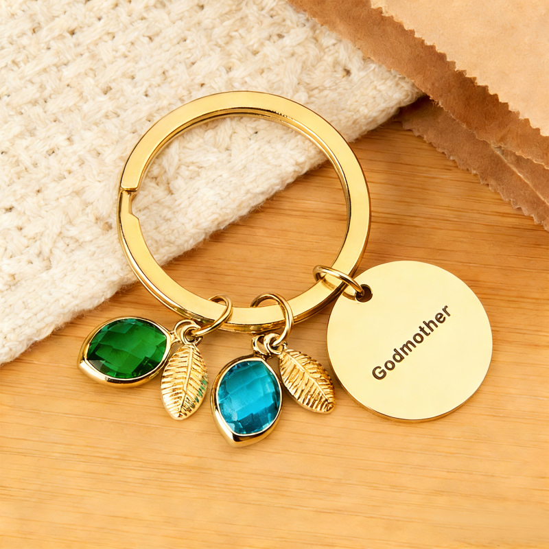 This thoughtful Custom Name Keychain with Birthstone and Leaf Pendant is the perfect gift for your godmother. Personalize it with her name and a sparkling birthstone to add a meaningful touch she’ll treasure every day. The delicate leaf pendant complements any style, making it a versatile accessory for days out or special occasions. Crafted with care, this lightweight yet durable keychain is designed to be a cherished keepsake that celebrates both her individuality and the bond you share.