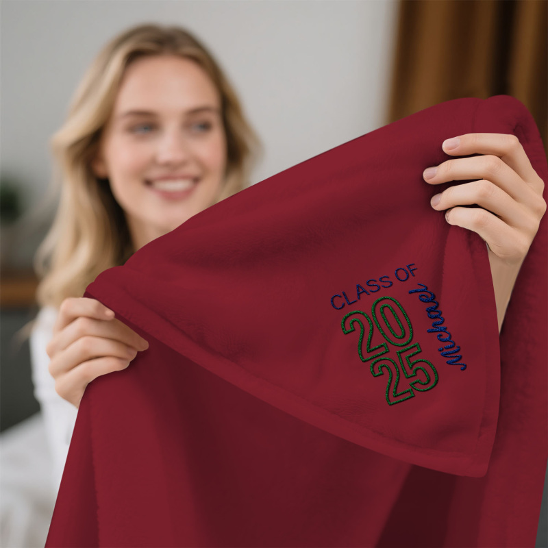 Celebrate achievement with the Graduating Class Of Embroidered Fleece Blanket, available in Grey, Pink, Black, Beige, and Navy. Choose from three sizes: 70*100cm, 100*120cm, or 120*200cm—perfect for commemorating special moments in style and comfort.