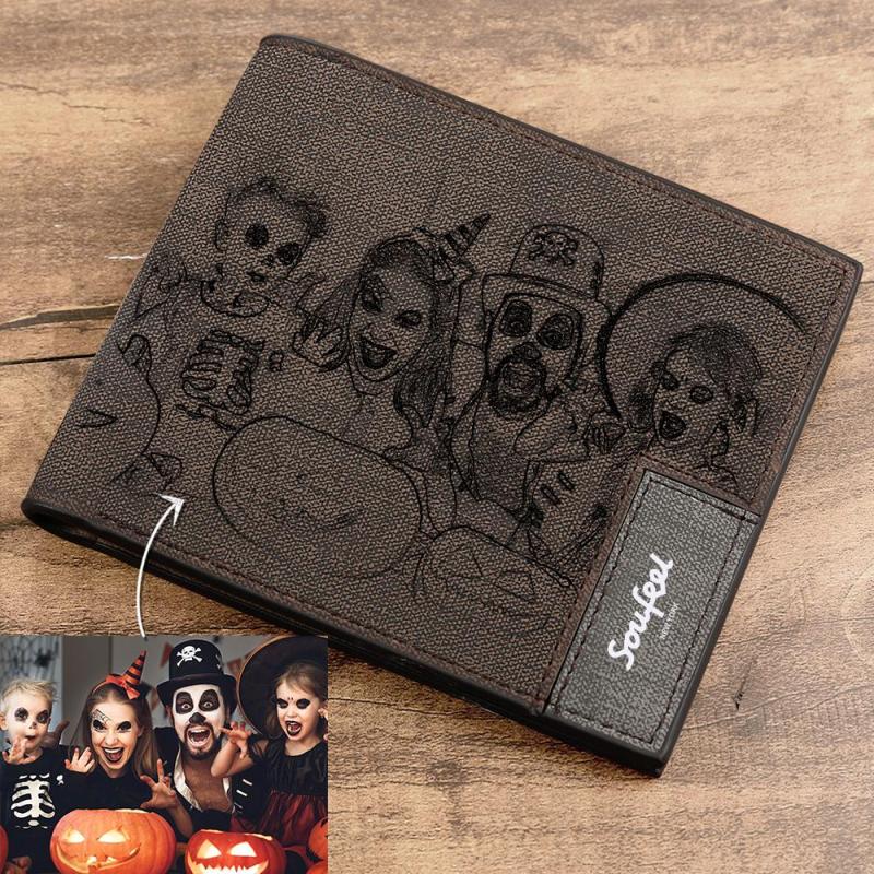 Men's Bifold Custom Inscription Photo Engraved Wallet - Coffee Leather Gift for Men