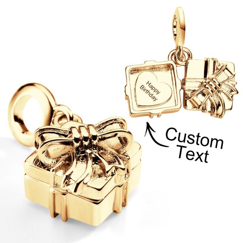 This openable dangle charm in the shape of a gift box is a perfect addition to any bracelet or necklace. Designed to fit all types of accessories, it makes an ideal gift for birthdays or Mother's Day. Available in silver, gold, and rose gold, this charm adds a touch of elegance and style to any jewelry collection.