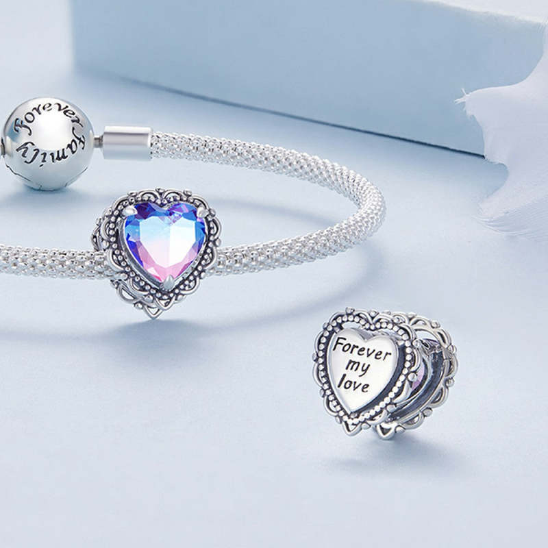 Heart Gradient Colorful Charm Silver