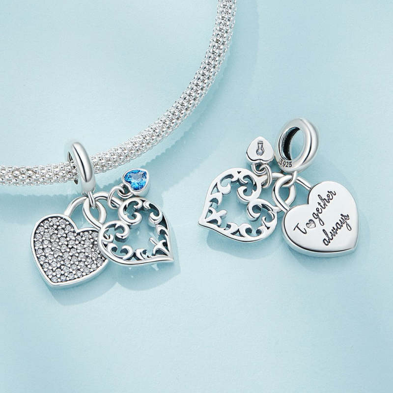 Heart Lock Dangle Charm Silver