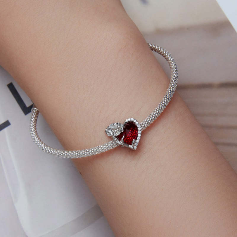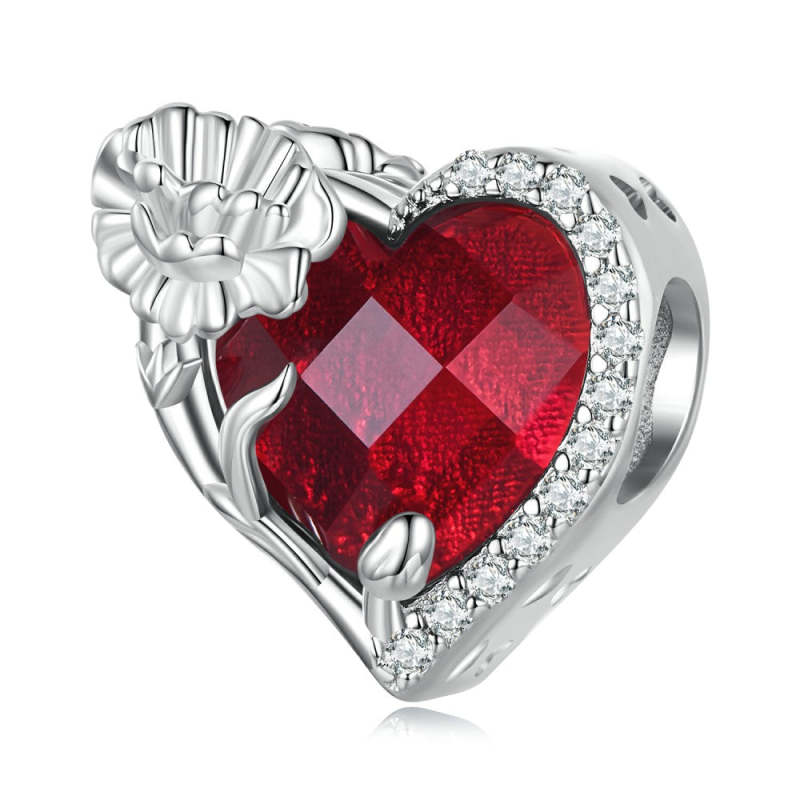 January Birthstone Red Charm Silver