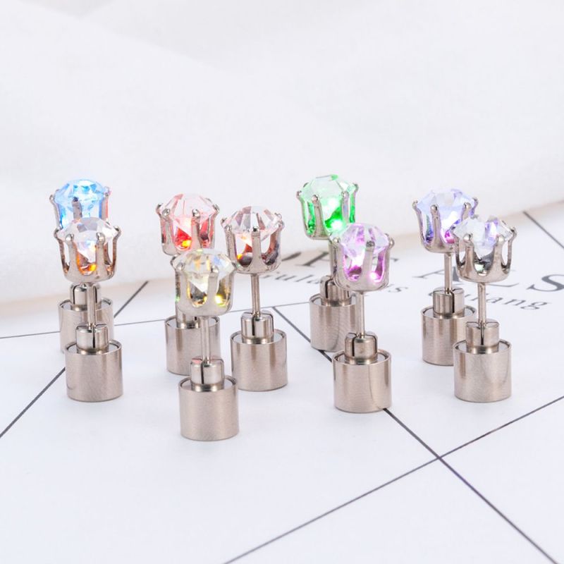 This earring has a good light effect and emits a dazzling glow in the dark. High light beads, various light colors, fashionable shape, suitable for all kinds of party wear. When the earring is inserted into the end of the ear plug, it will light up, and when it is pulled out a little, the light will go out.