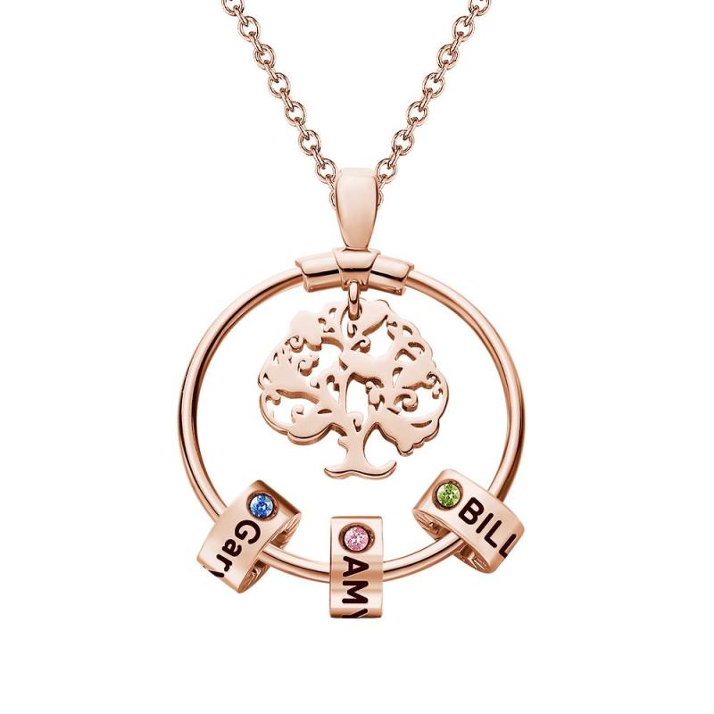 Life Tree Engraved Necklace With Custom One Birthstone Gifts - Rose Gold