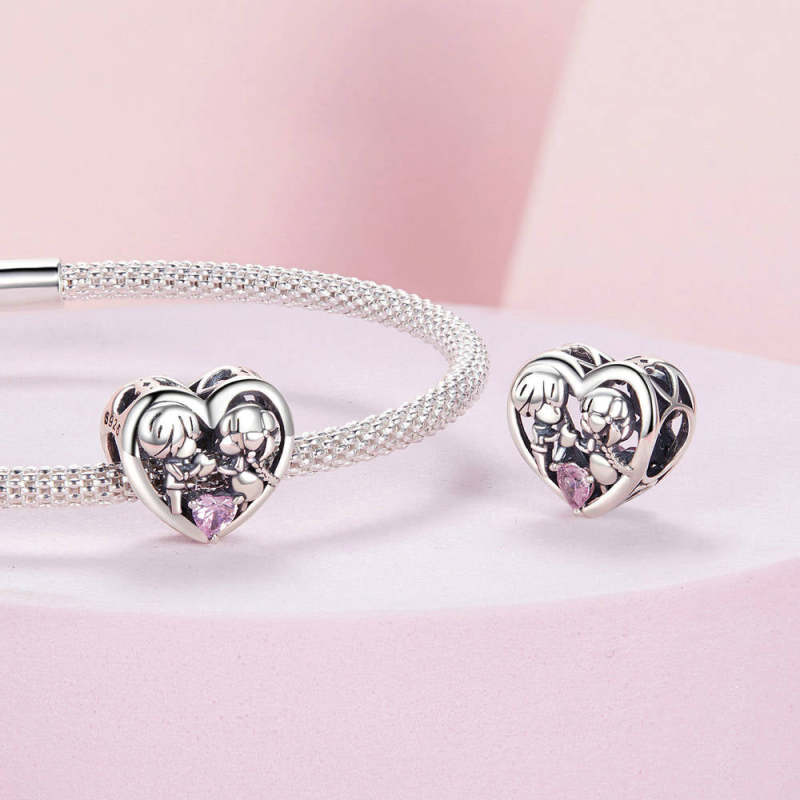 Little Boy and Girl Diamond Hearts Charm Silver Christmas Gifts