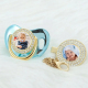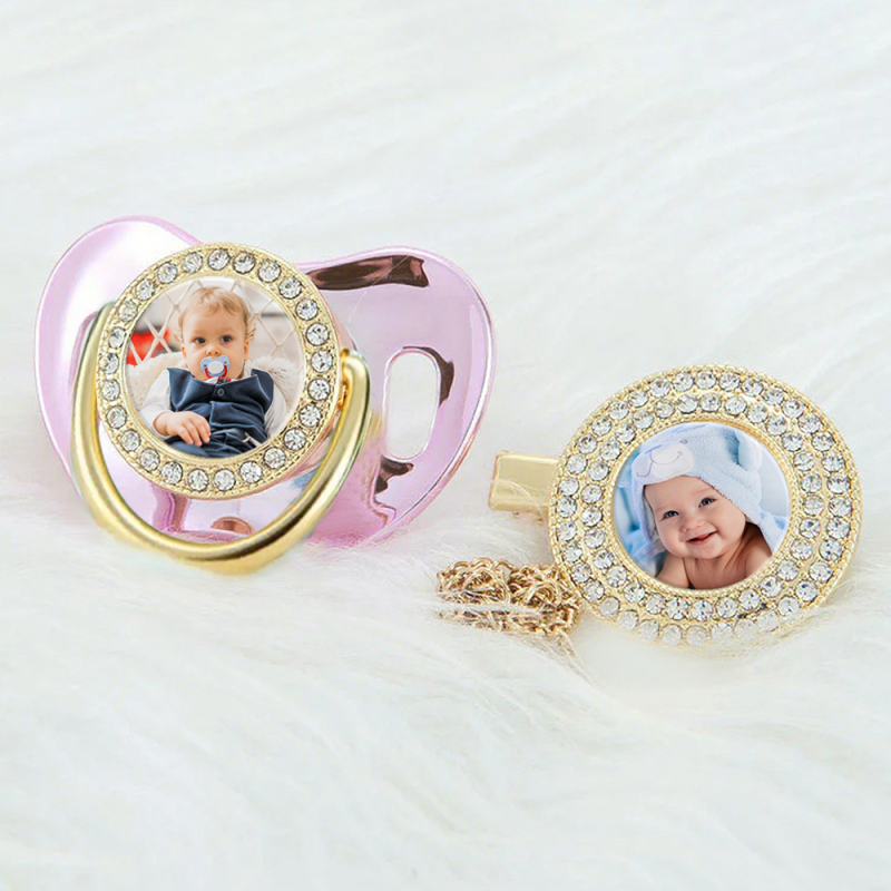 Looking for a unique and luxurious baby gift? This personalized pacifier set is a one-of-a-kind keepsake that parents will treasure forever. Whether for a newborn celebration, first birthday, or christening, this elegant set makes a perfect present!