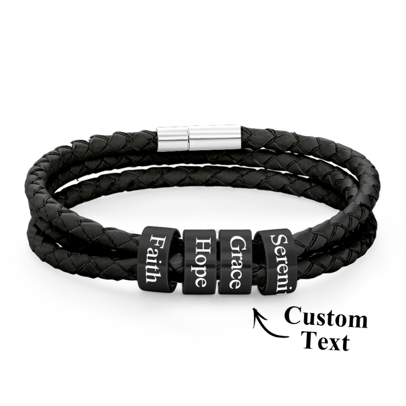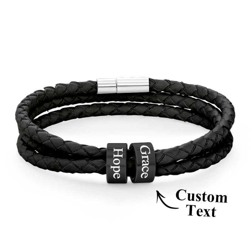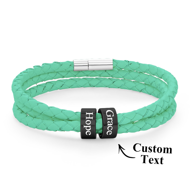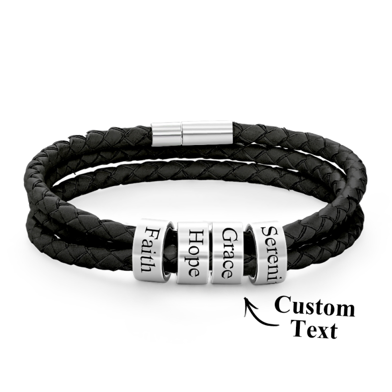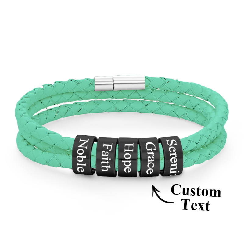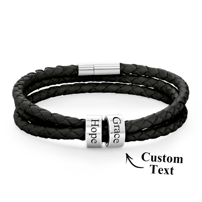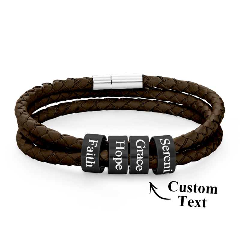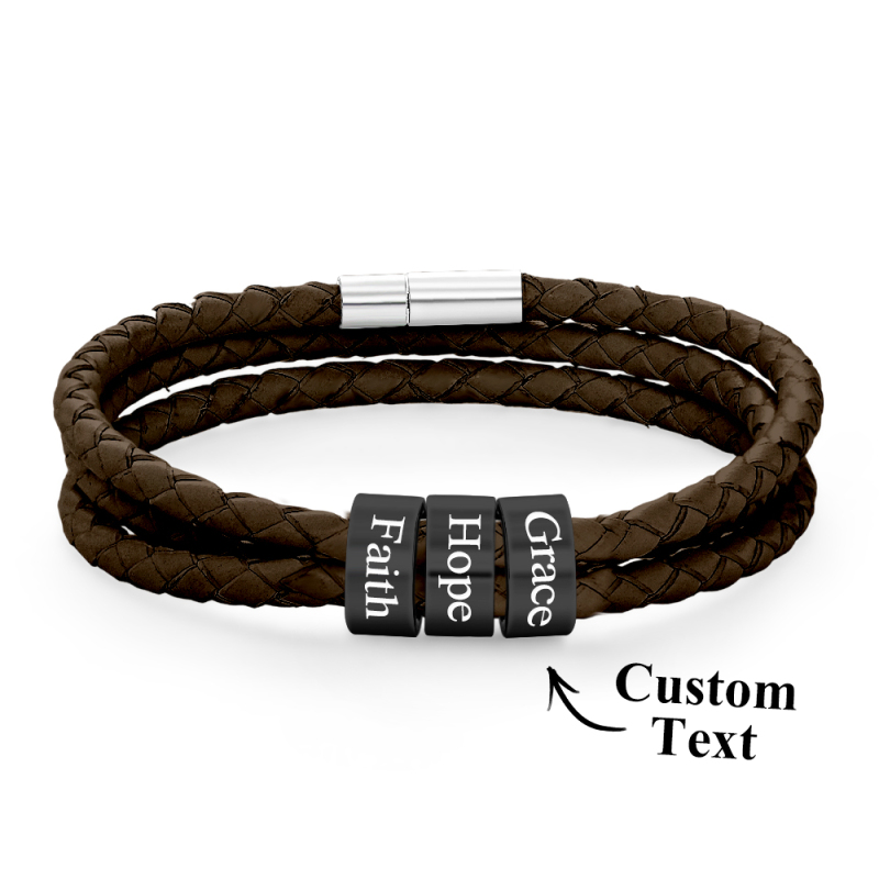 Men Braided Leather Bracelet with Small Custom Beads
