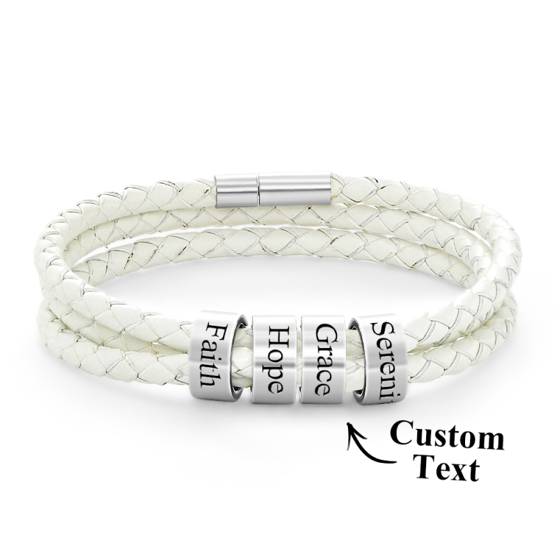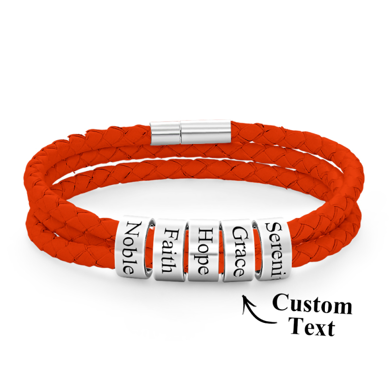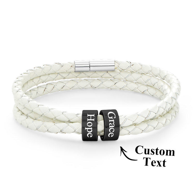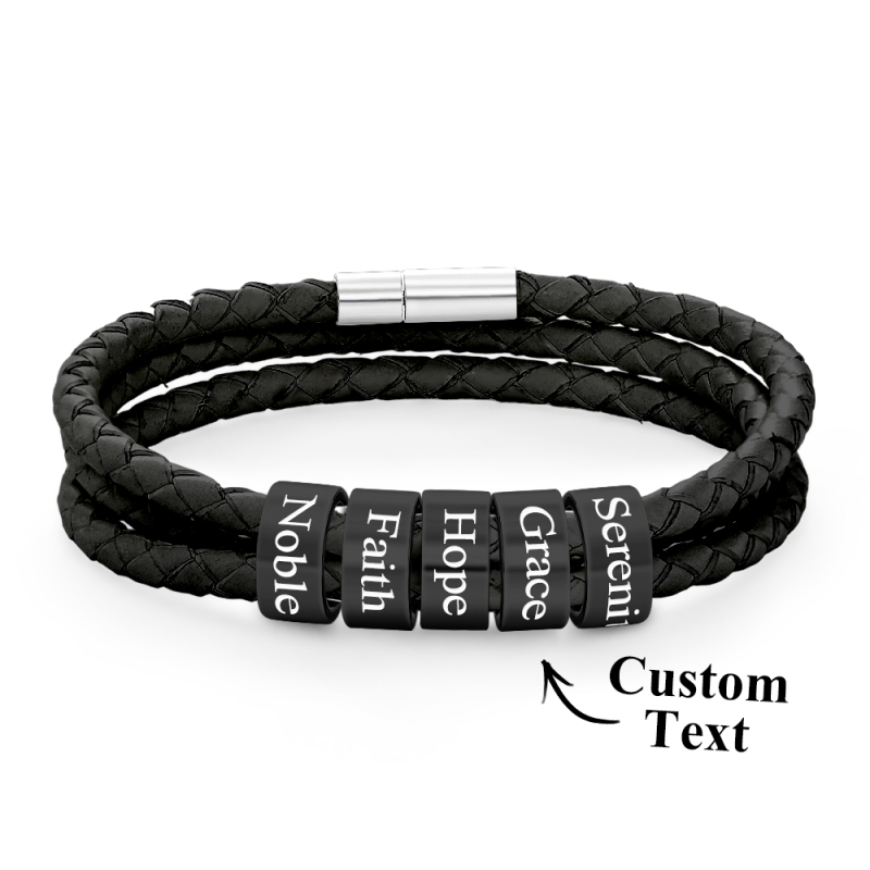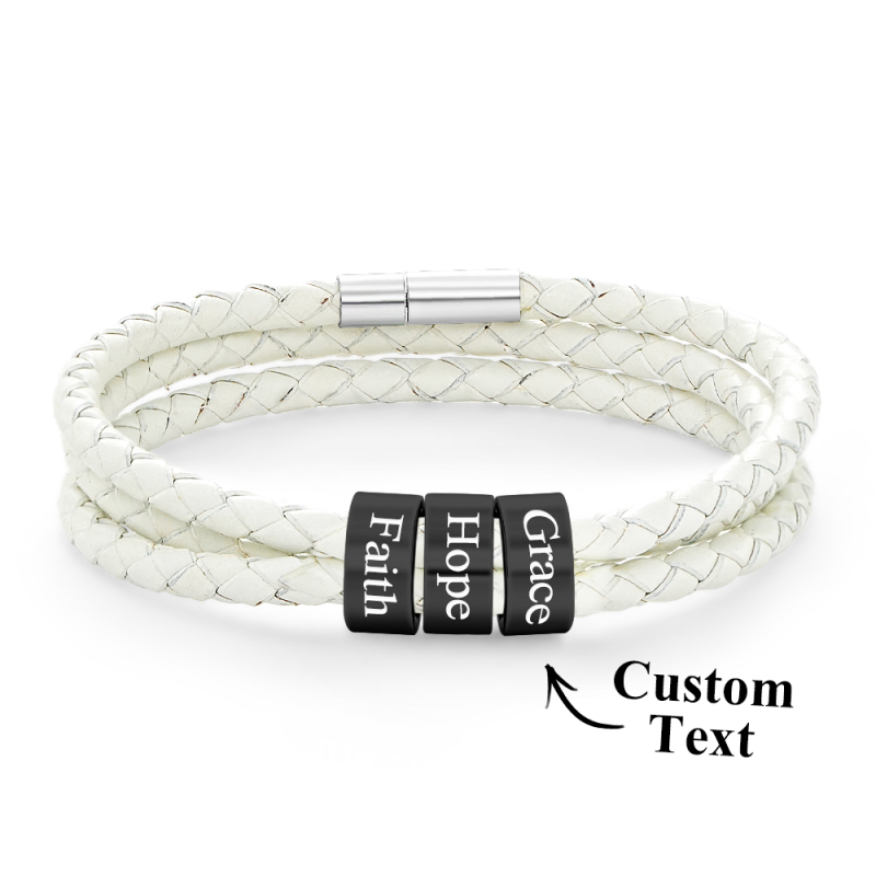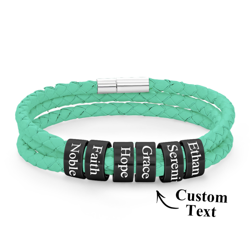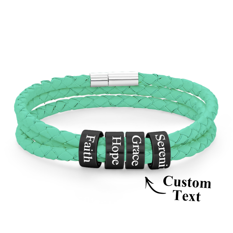 Men Braided Leather Bracelet with Small Custom Beads