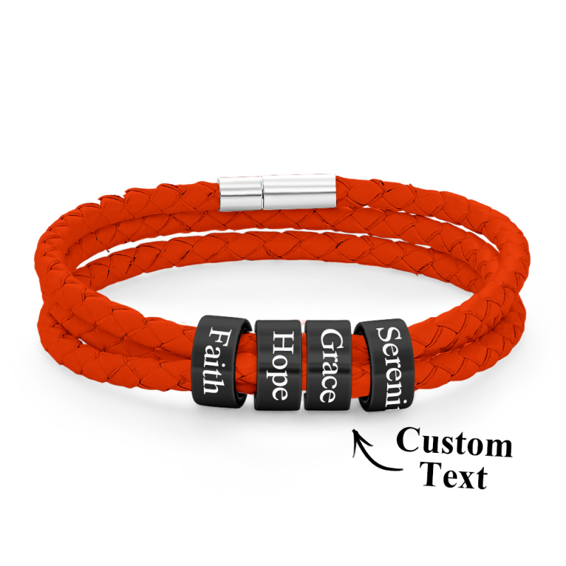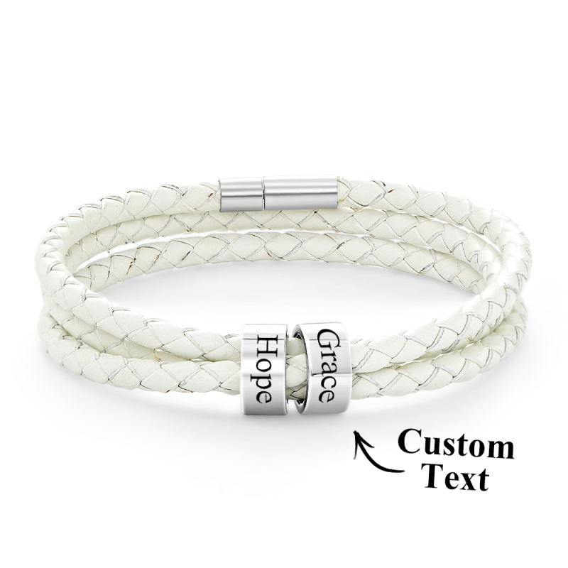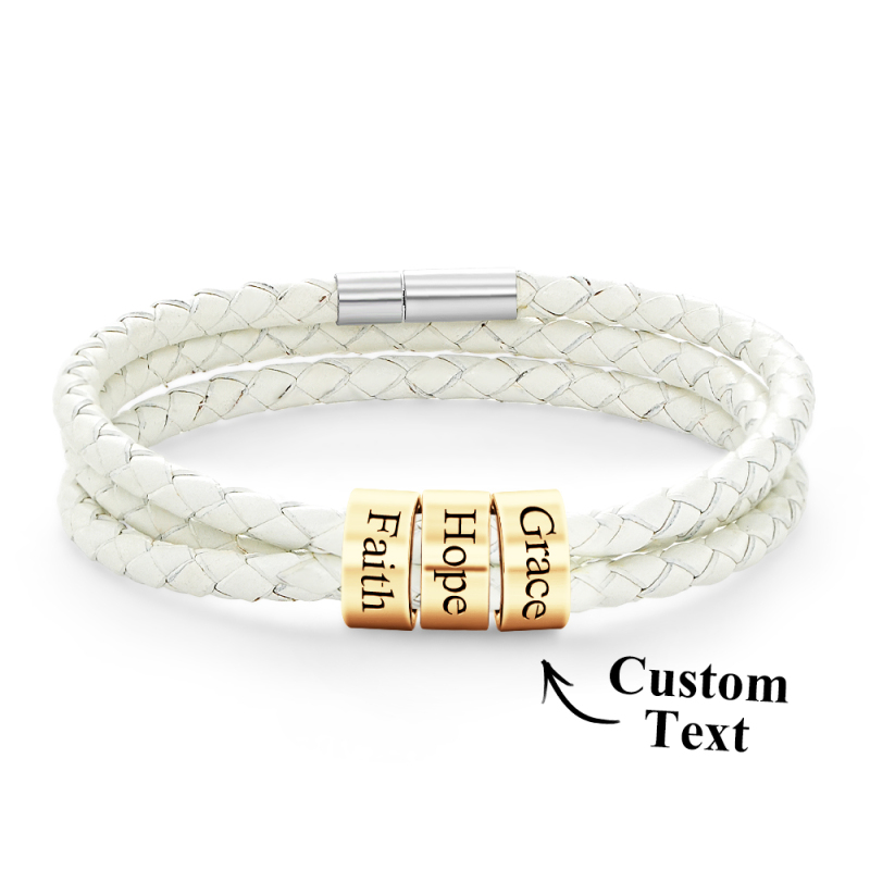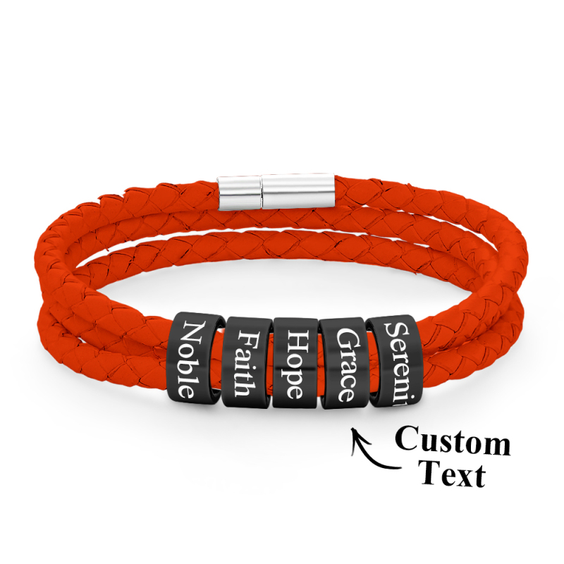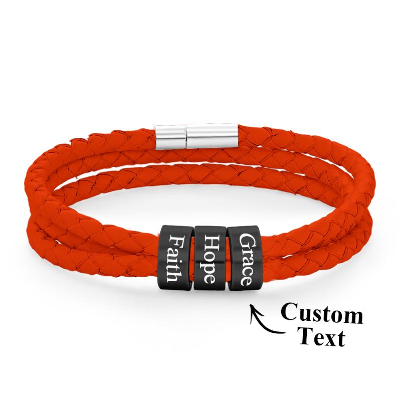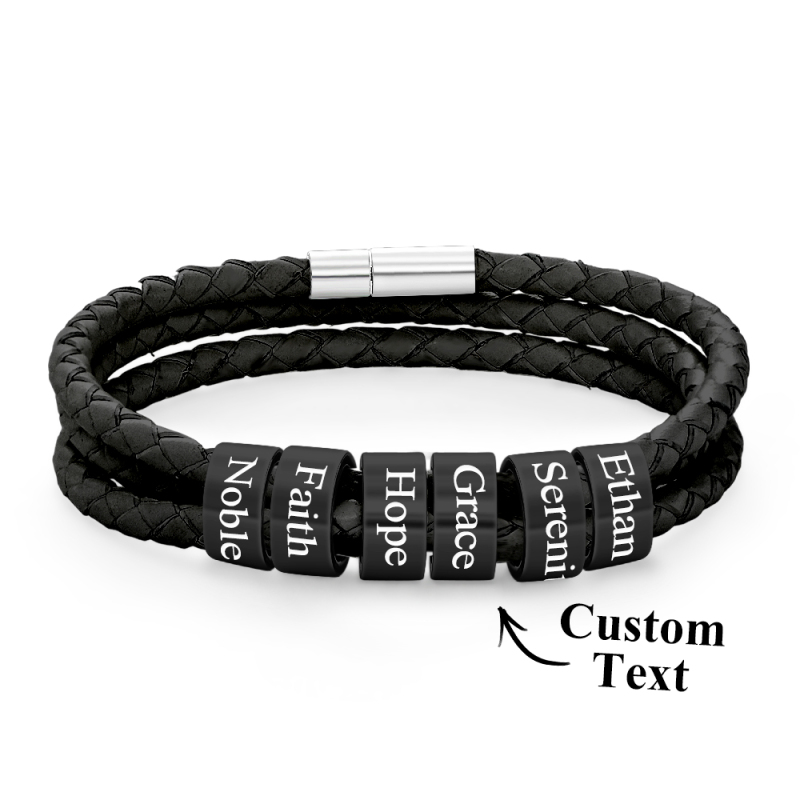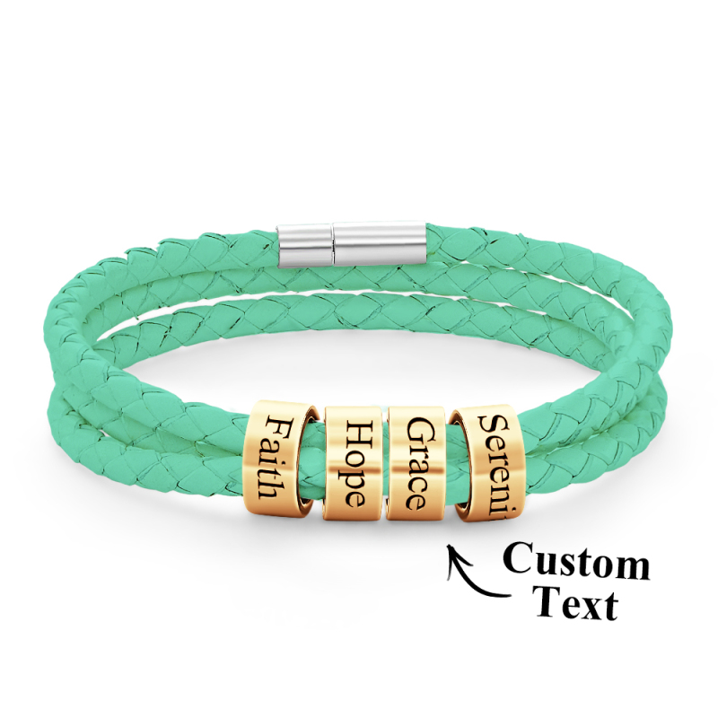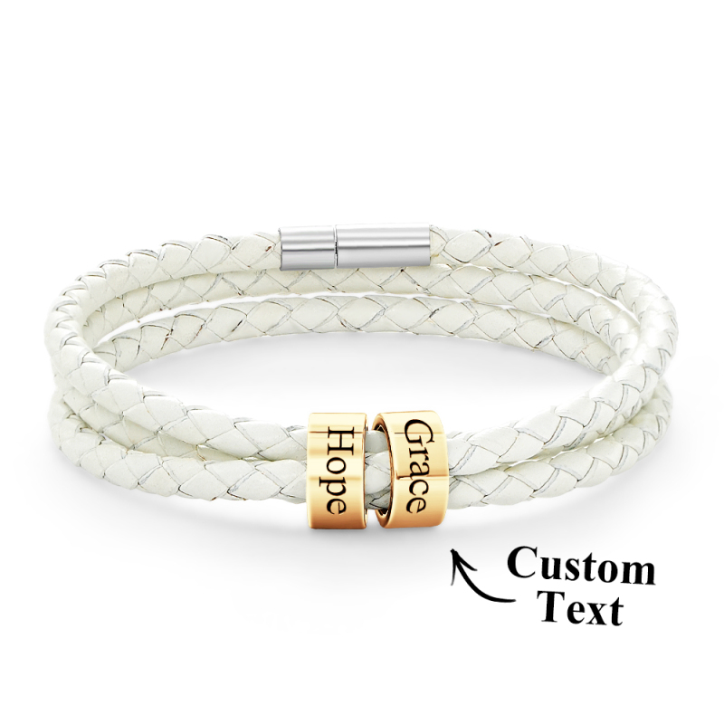 Men Braided Leather Bracelet with Small Custom Beads