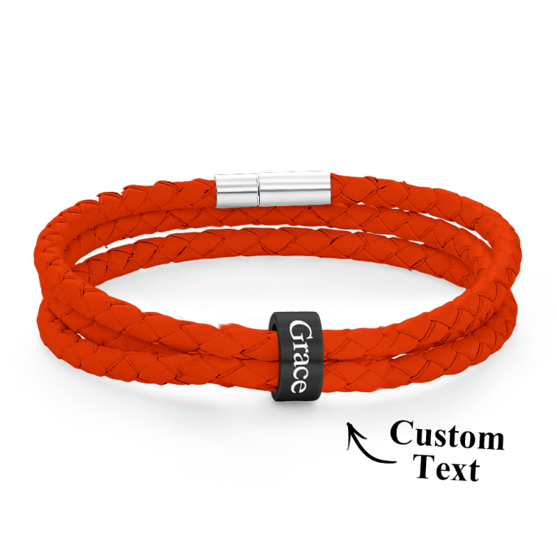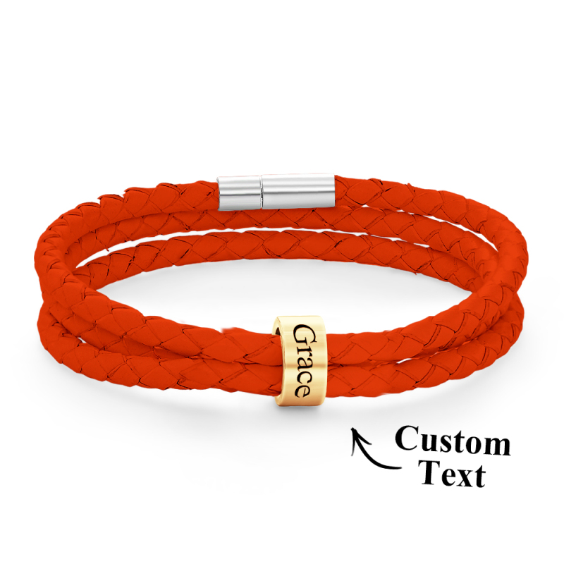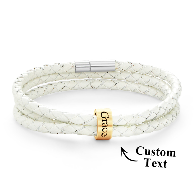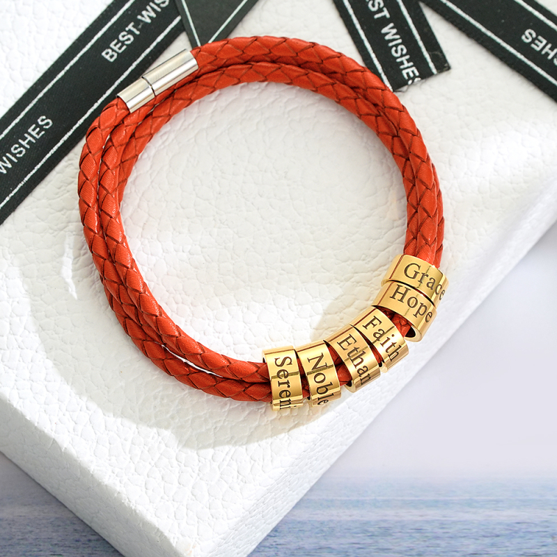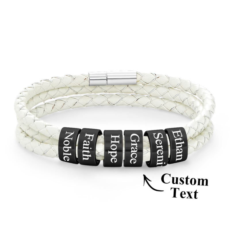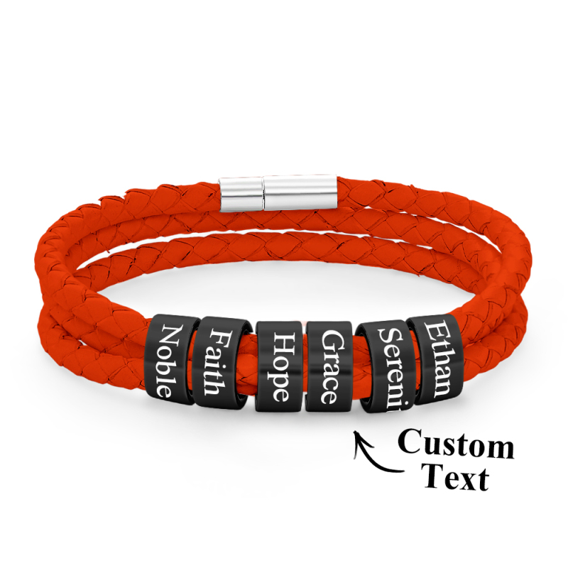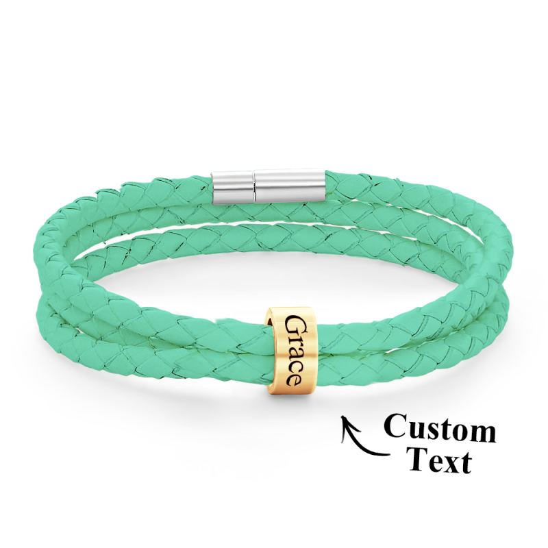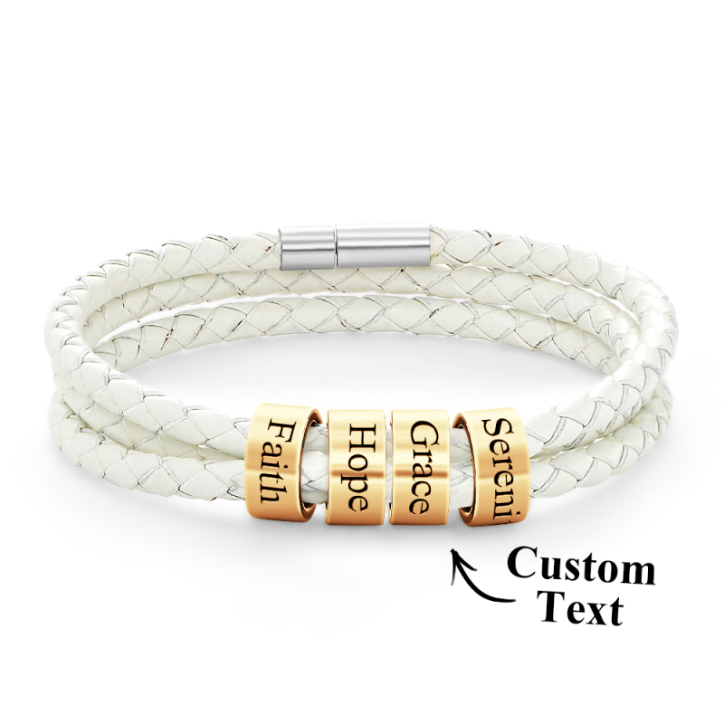 Men Braided Leather Bracelet with Small Custom Beads