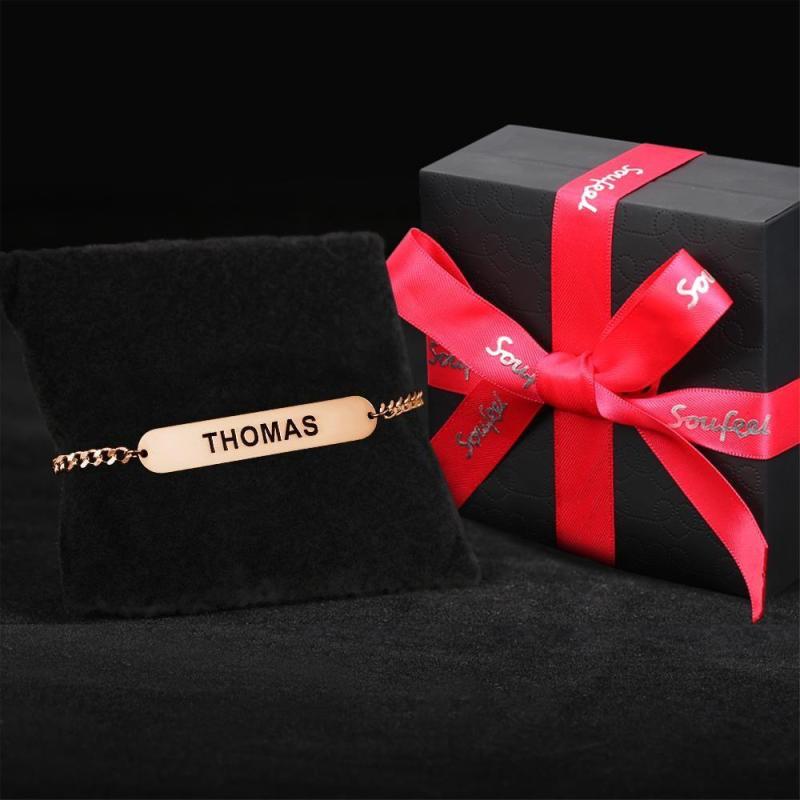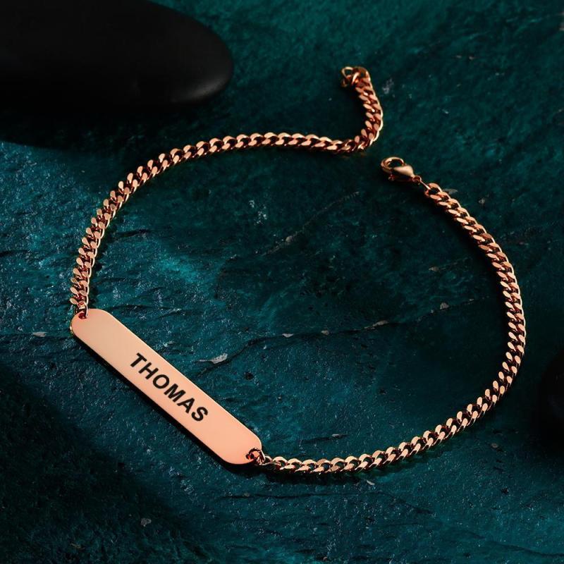 Men's Bracelet Thick Chain Engraved Bracelet Custom Name Bracelet Gift for Couples - Rose Gold Plated
