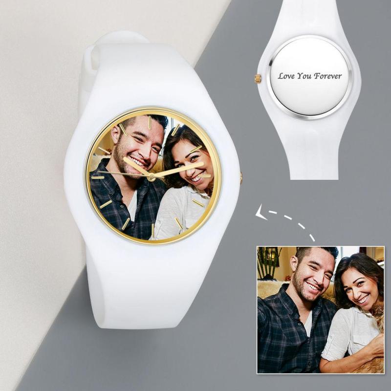 Men's Silicone Engraved Photo Watch Men's Engraved Photo Watch 41mm White Strap