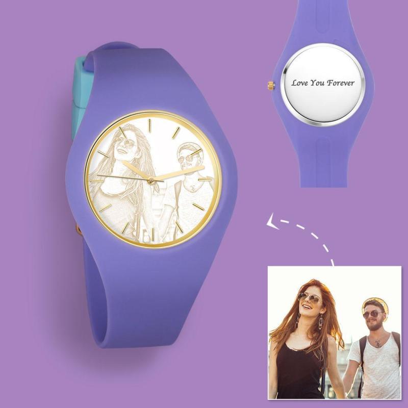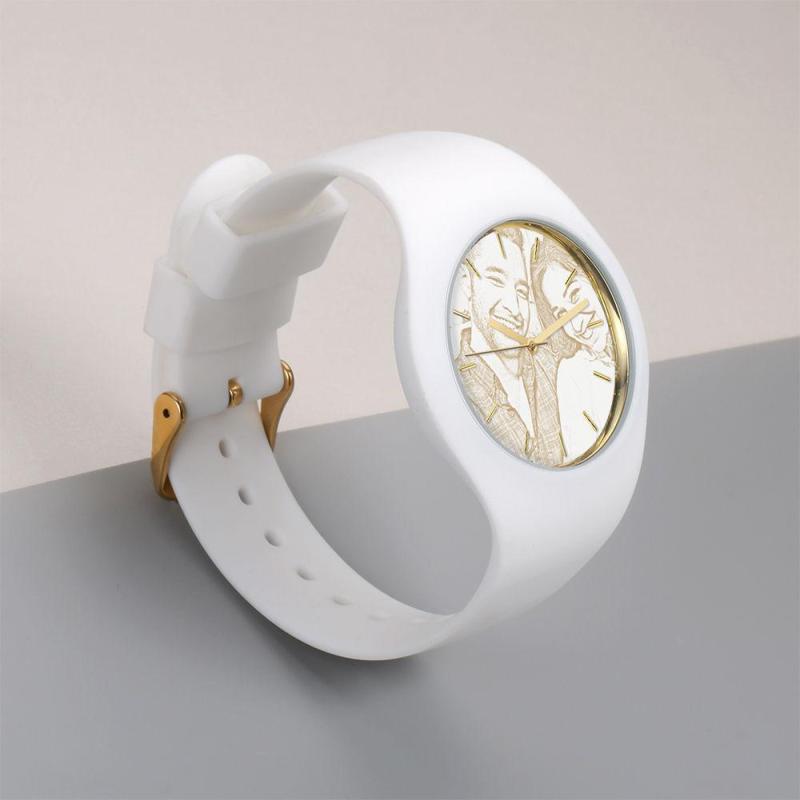 Men's Silicone Engraved Photo Watch Men's Engraved Photo Watch 41mm White Strap - Golden