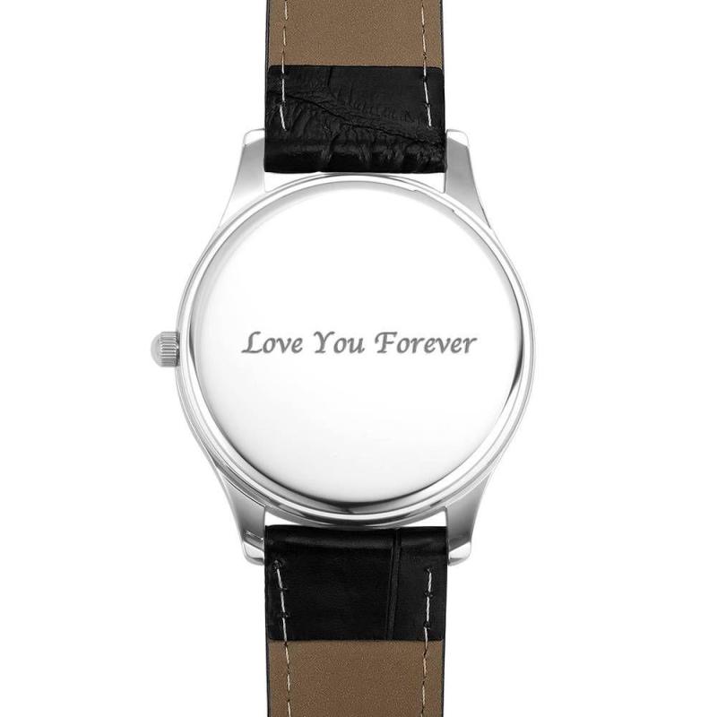 Men's Engraved Photo Watch 43mm Black Leather Strap - Sketch
