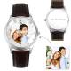 Men's Engraved Photo Watch 43mm Brown Leather Strap
