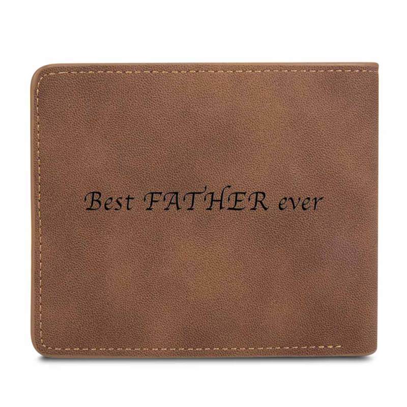 Men's Bifold Custom Inscription Photo Engraved Wallet - Brown Leather
