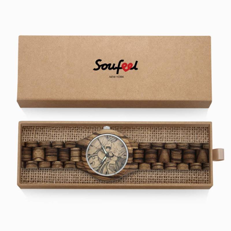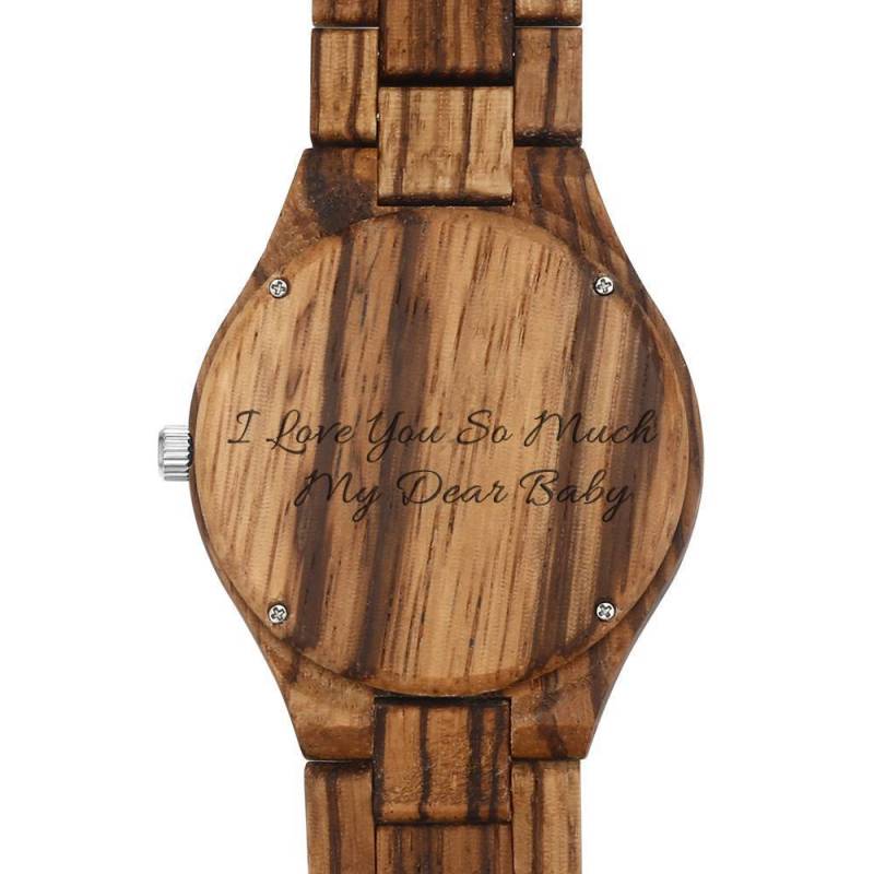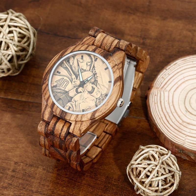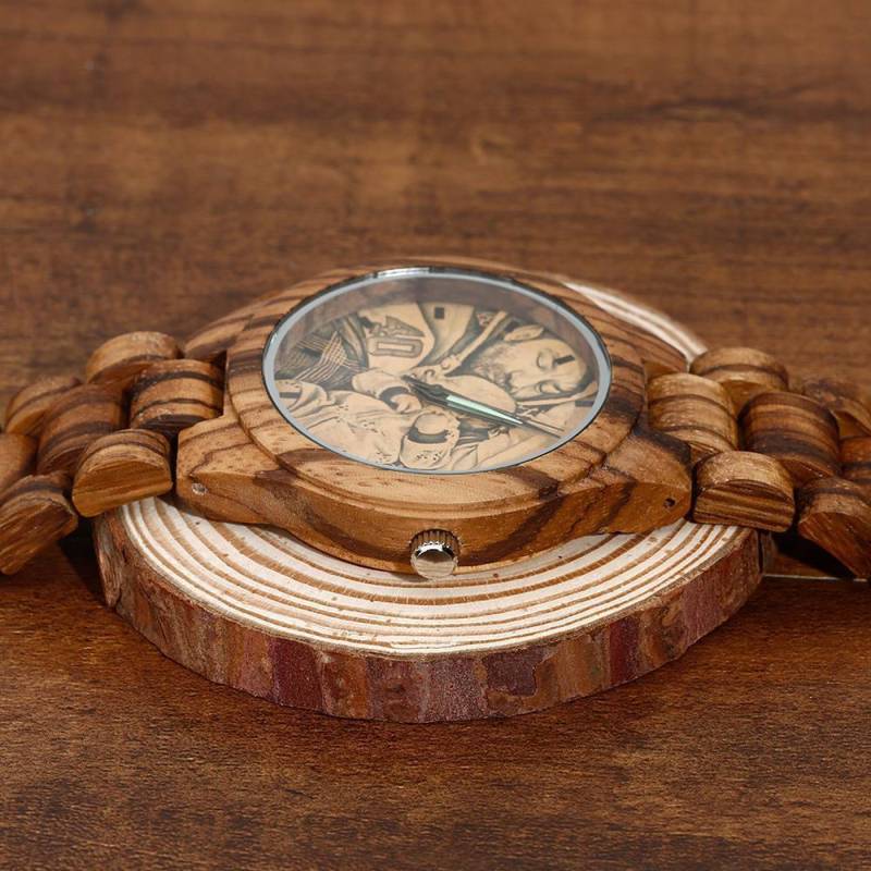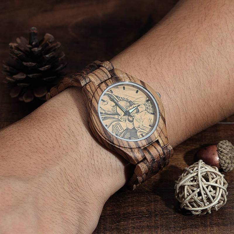 Men's Engraved Wooden Photo Watch Wooden Strap 45mm