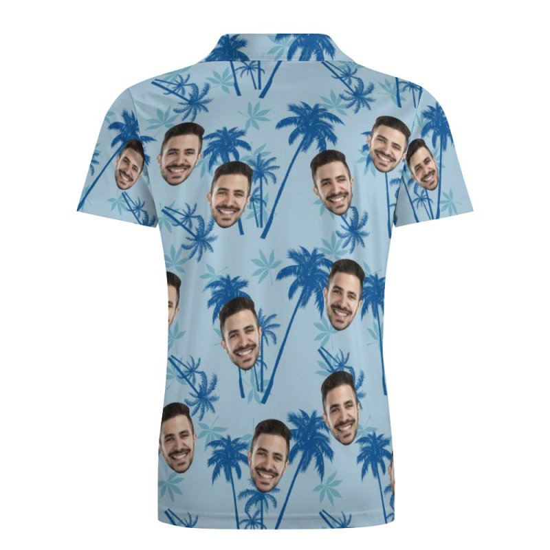 Men's Custom Face Polo Shirt Personalised Light Blue Hawaiian Golf Shirts