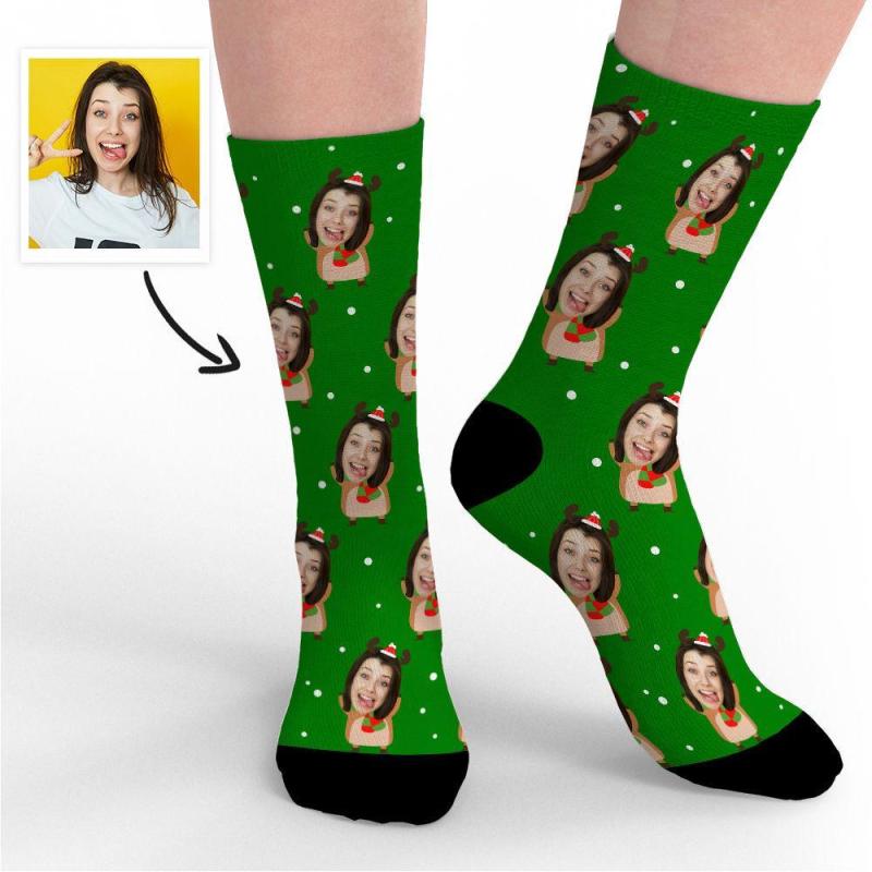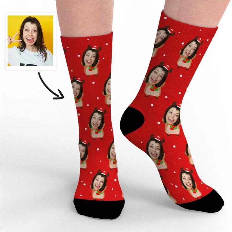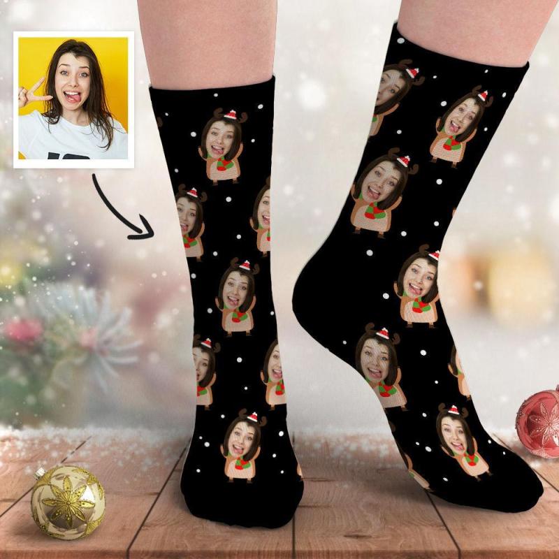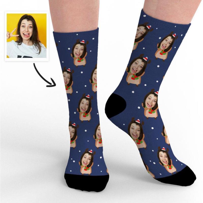 Merry Christmas Photo Socks Face Socks Cute Elk Memorial Gifts for Christmas