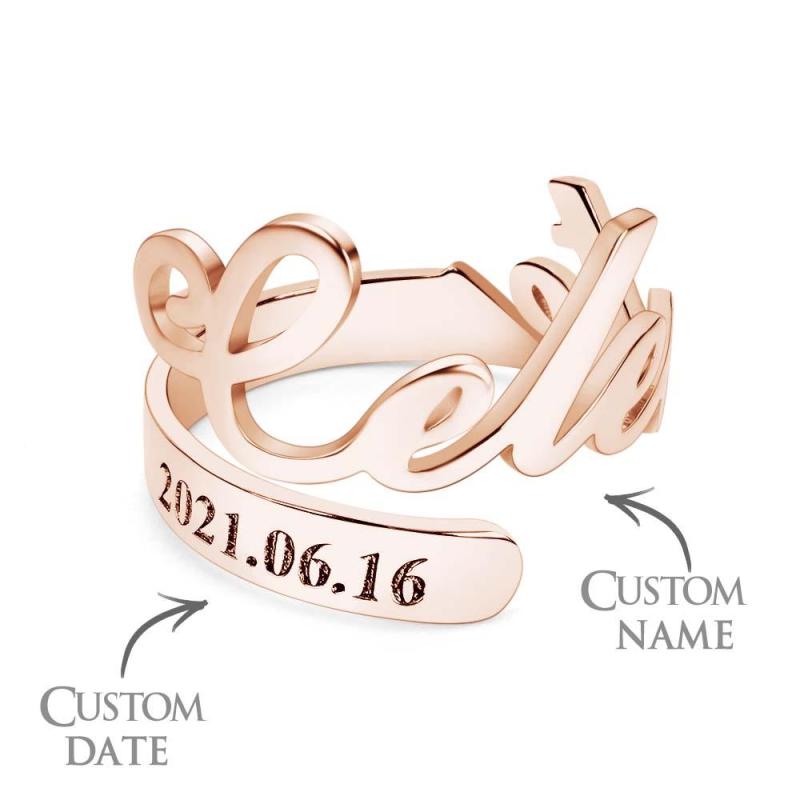 Minimalist Spiral Engraved Name Adjustable Open Ring Personalised Text Commemorative Ring