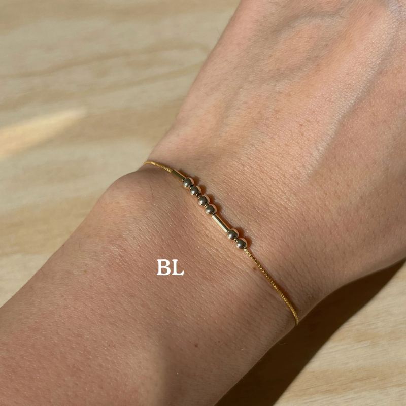 The Gold and Silver Morse Code Bracelet is a must-have accessory. Combining elegance with a touch of mystery, this bracelet features the famous Morse code symbols. Crafted with precision, the gold and silver tones exude sophistication, making it a versatile piece for any occasion. Express your style and communication in a subtle and unique way with this stunning bracelet.