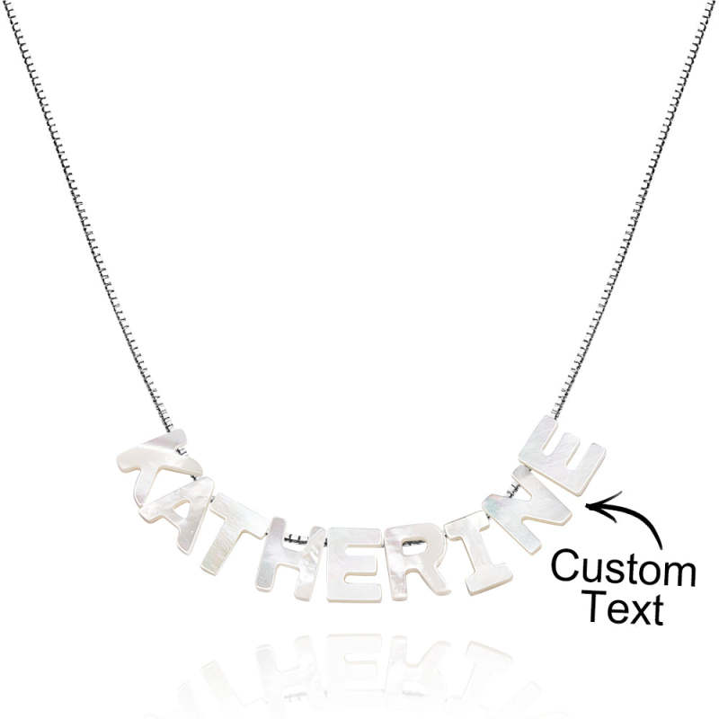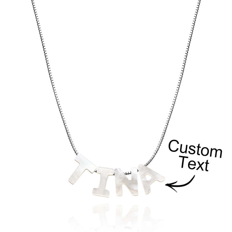 Mother of Pearl Name Necklace Custom Name Silver Necklace