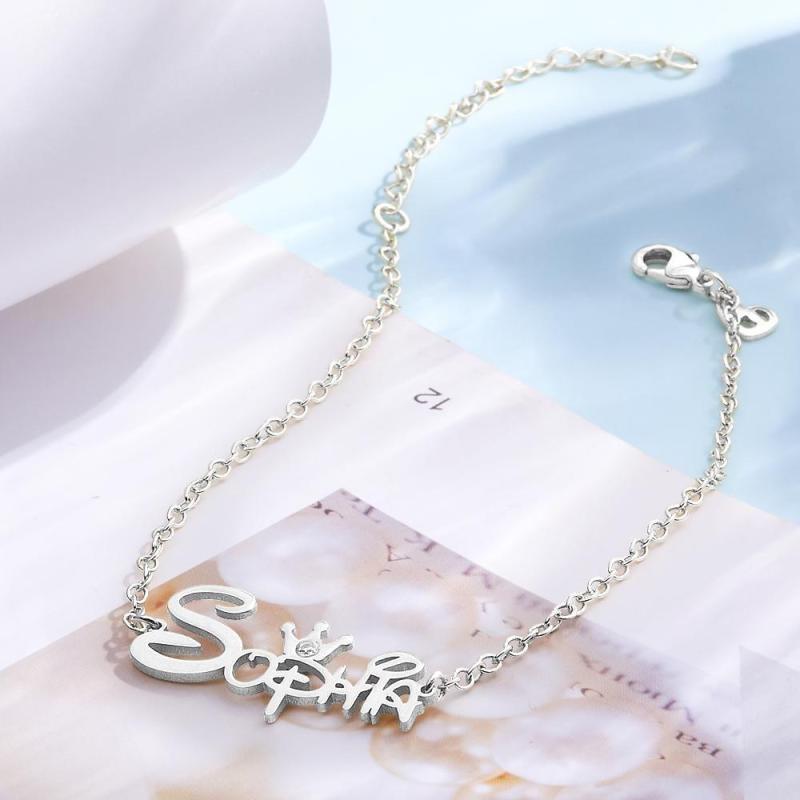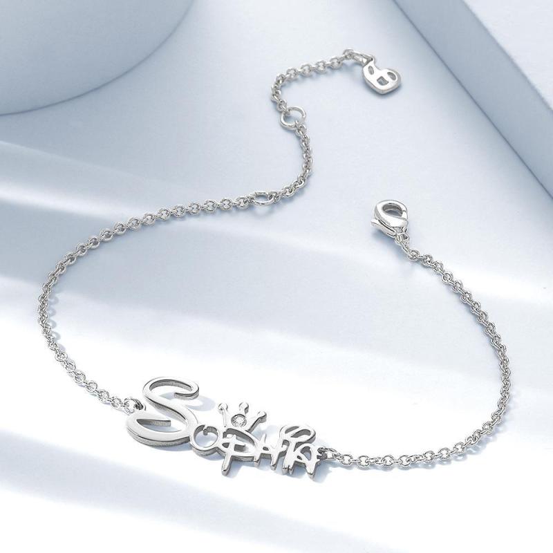 Name Bracelet, Custom Name Bracelet with Crown for Girlfriend