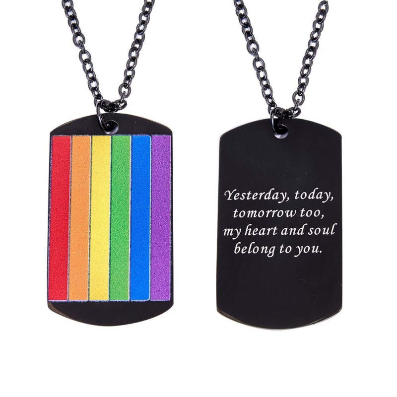 Personalised Black Engraved Necklace Rainbow Color With Custom Words Perfect Gift For Queers On Pride's Day