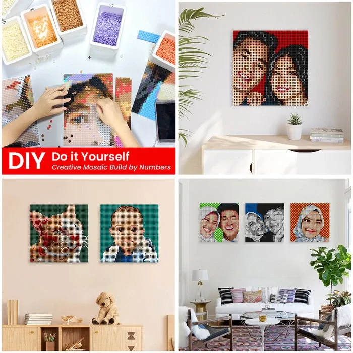 Transform any image into an exciting compatible adventure with our personalized brick mosaic. Create a unique masterpiece with our colorful bricks, included baseplates and easy instructions - the only limit is your imagination!