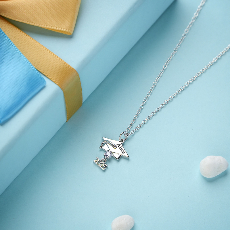 Personalized Name - The necklace can be personalized with a custom birthstone and name. The birthstone serves as a reminder of the wearer's individuality and adds a pop of color and sparkle to the necklace. This allows you to add a personal touch to the necklace, making it a unique and meaningful piece of graduation jewelry.