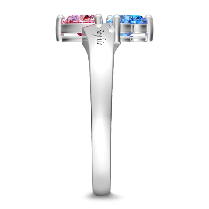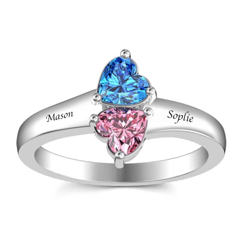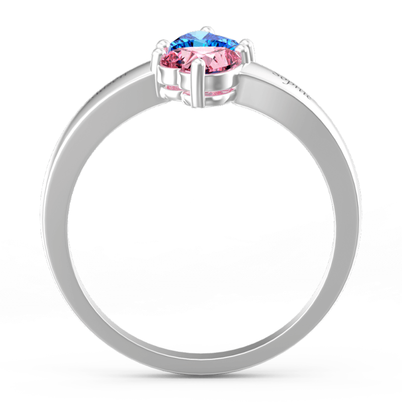 Personalised Heart Birthstone Promise Ring with Engraving Silver