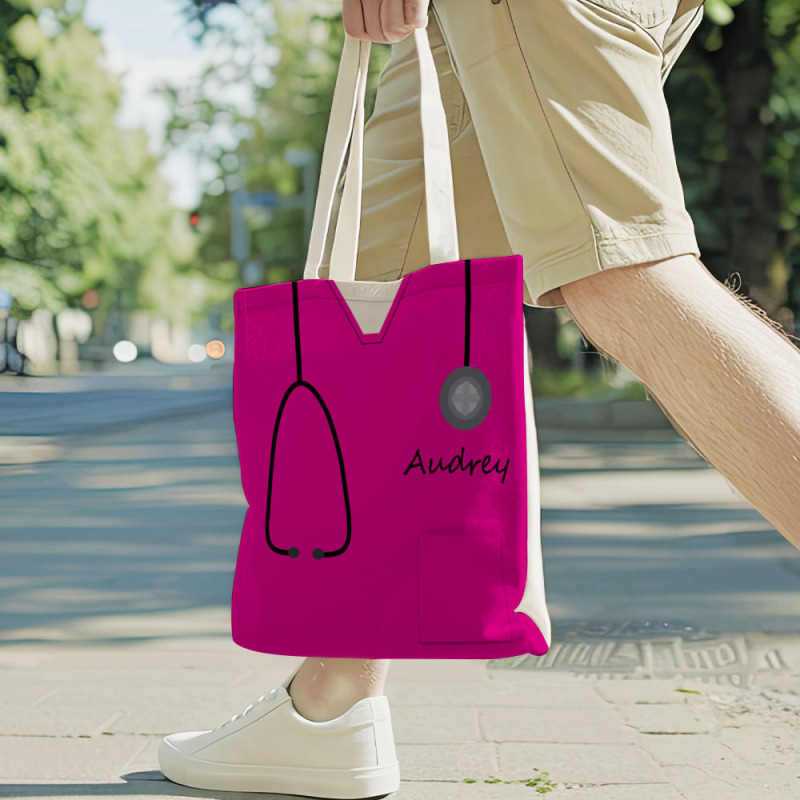 This custom tote bag is not just a bag; it's a token of gratitude and recognition for the selfless dedication and care that nurses provide every day. It's a perfect present for birthdays, Nurses' Day, or any occasion to show your appreciation.