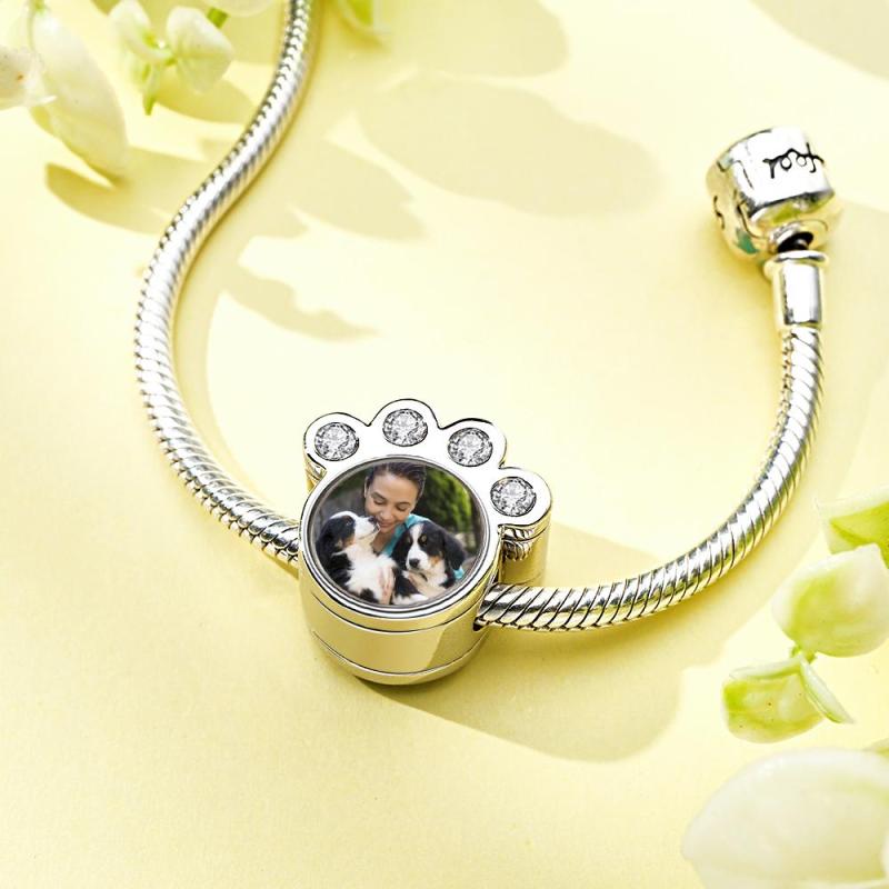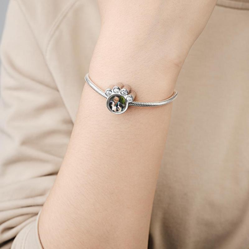 Personalised Paw Photo Charm of Bracelet Custom Picture Charm Cute Pet Photo Bead Fits Bracelet Necklace Anniversary Gift