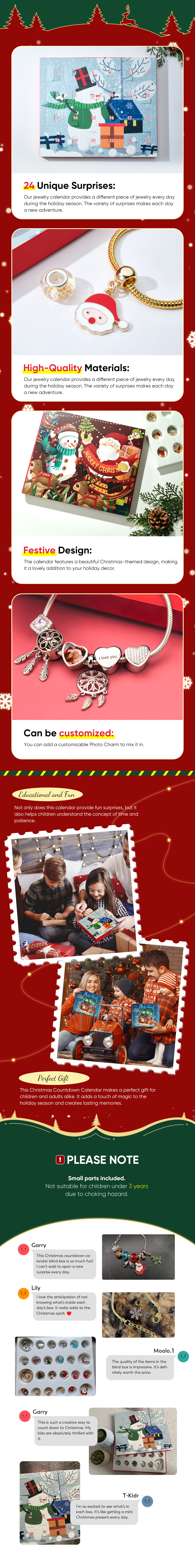 A daily dose of holiday charm: Every day, open a new door and discover a carefully selected piece for your bracelet. From adorable reindeer and twinkling stars to jolly Santa Claus and festive ornaments Jewellery Advent Calendar