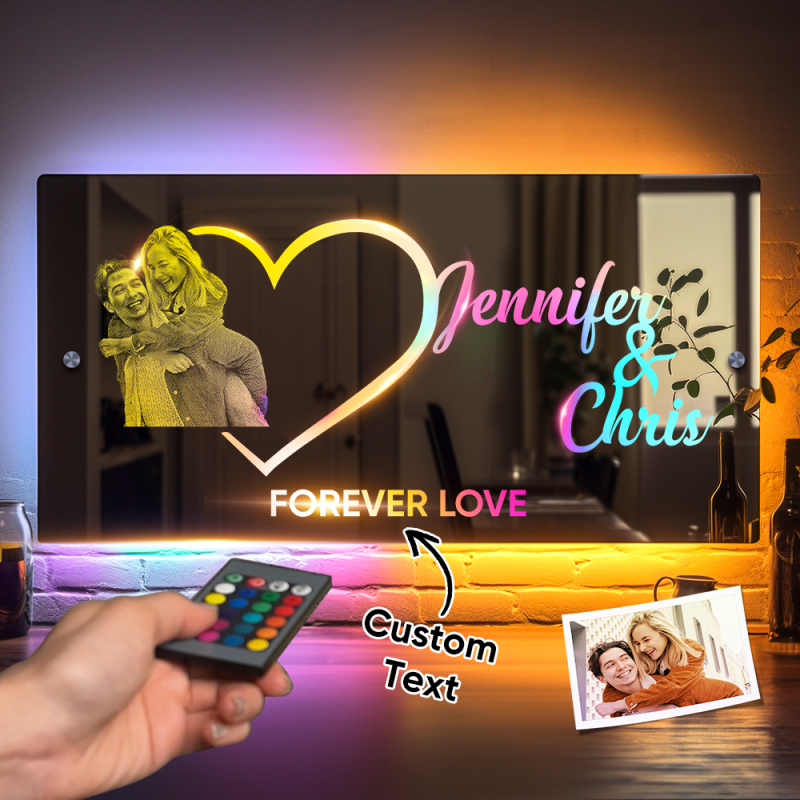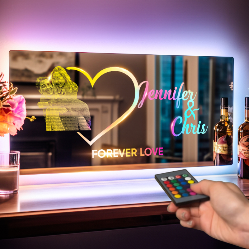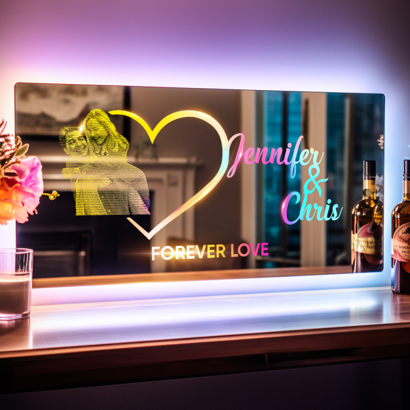 Personalised Photo Name Mirror Light Heart Couple Gift Custom Mirror Neon Signs Wall Decor Custom Name Sign for Bedroom Valentine's Day Gift