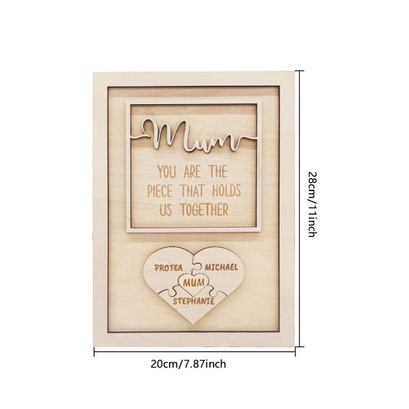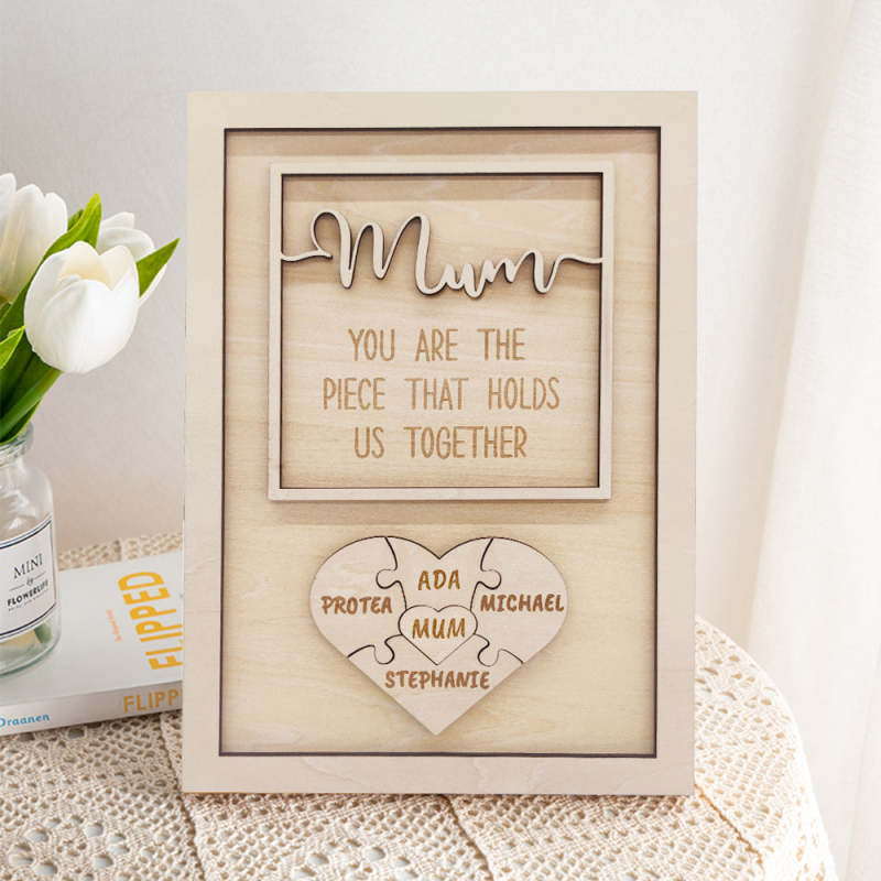 For the romance and pampering of this life, you need to leave a copy of your mother. On the occasion of Mother's Day, send mum a plaque with kids' names puzzle sign. And proudly proclaim "You Are The Piece That Holds Us Together" to mum. This gift touches your mother or wife more than any promise and will make her happy like a child.